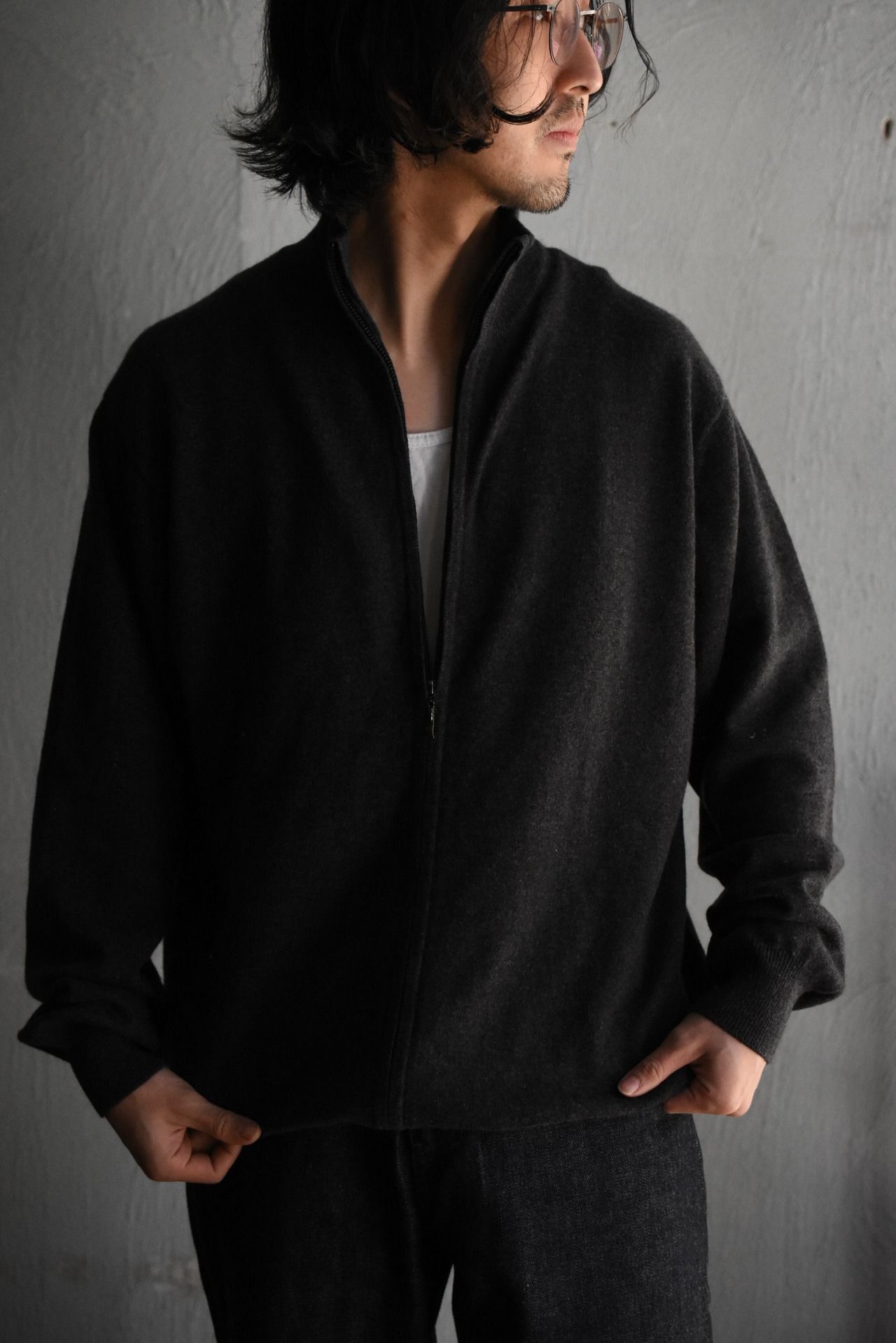 "unknown"cashmere full zip sweater
