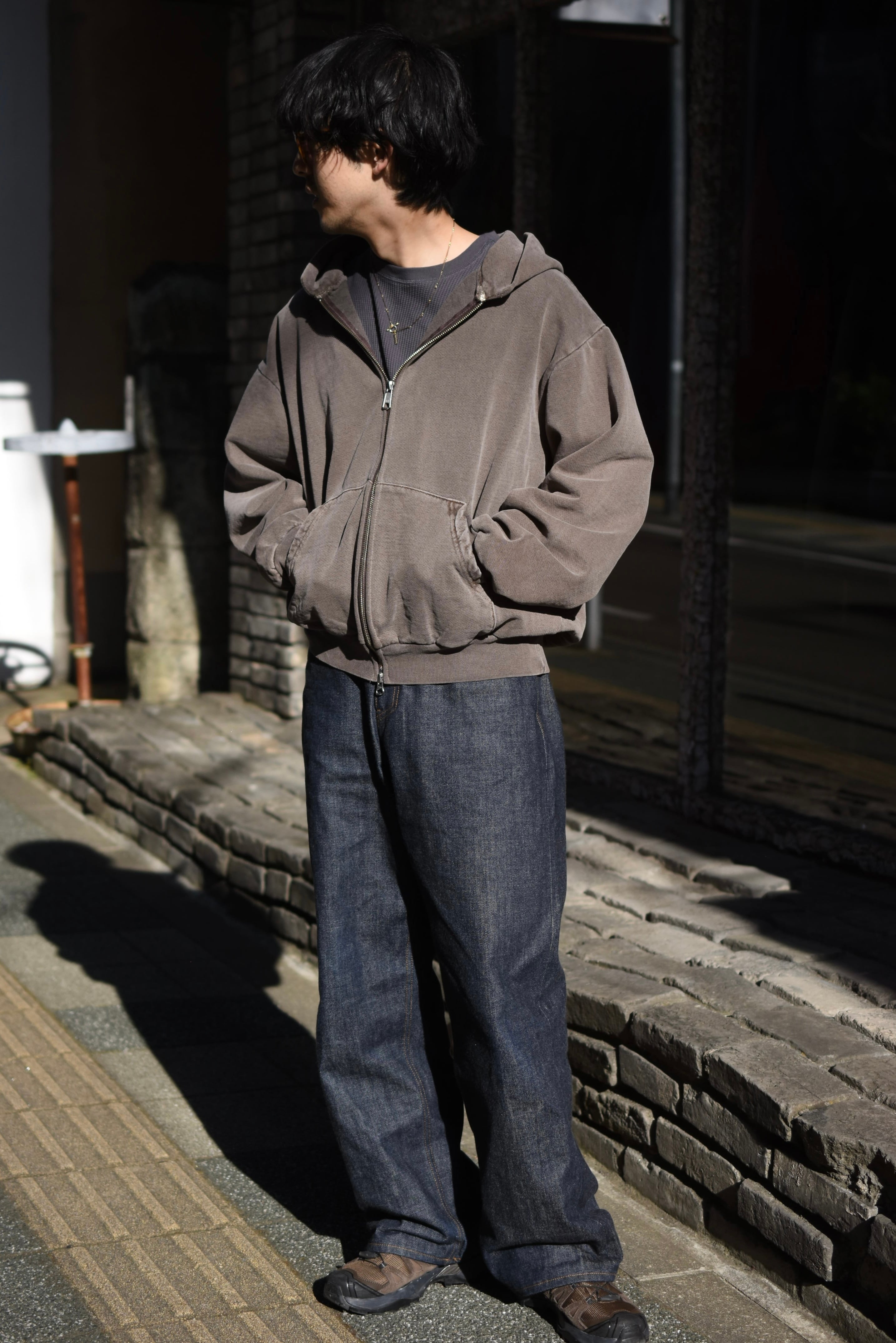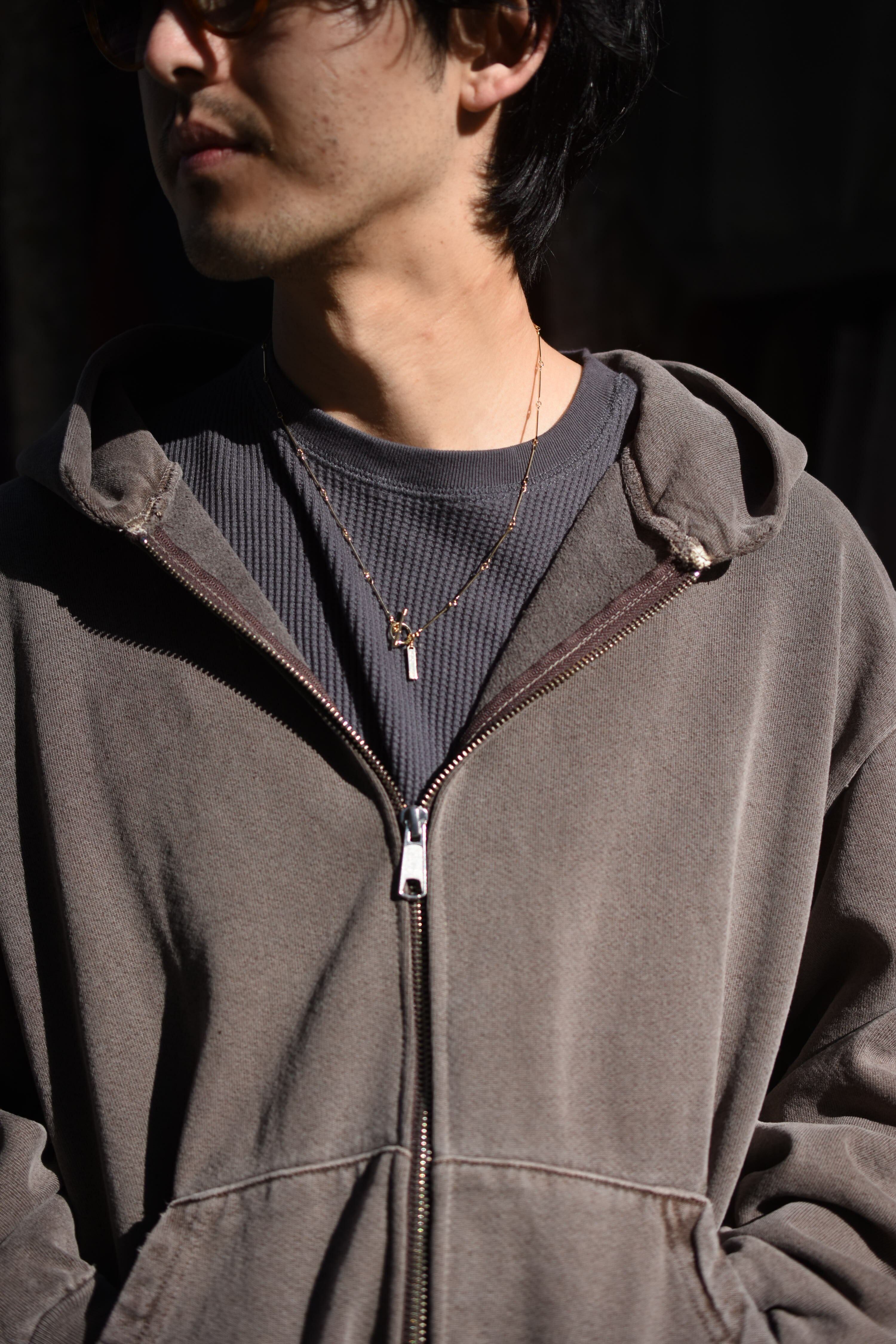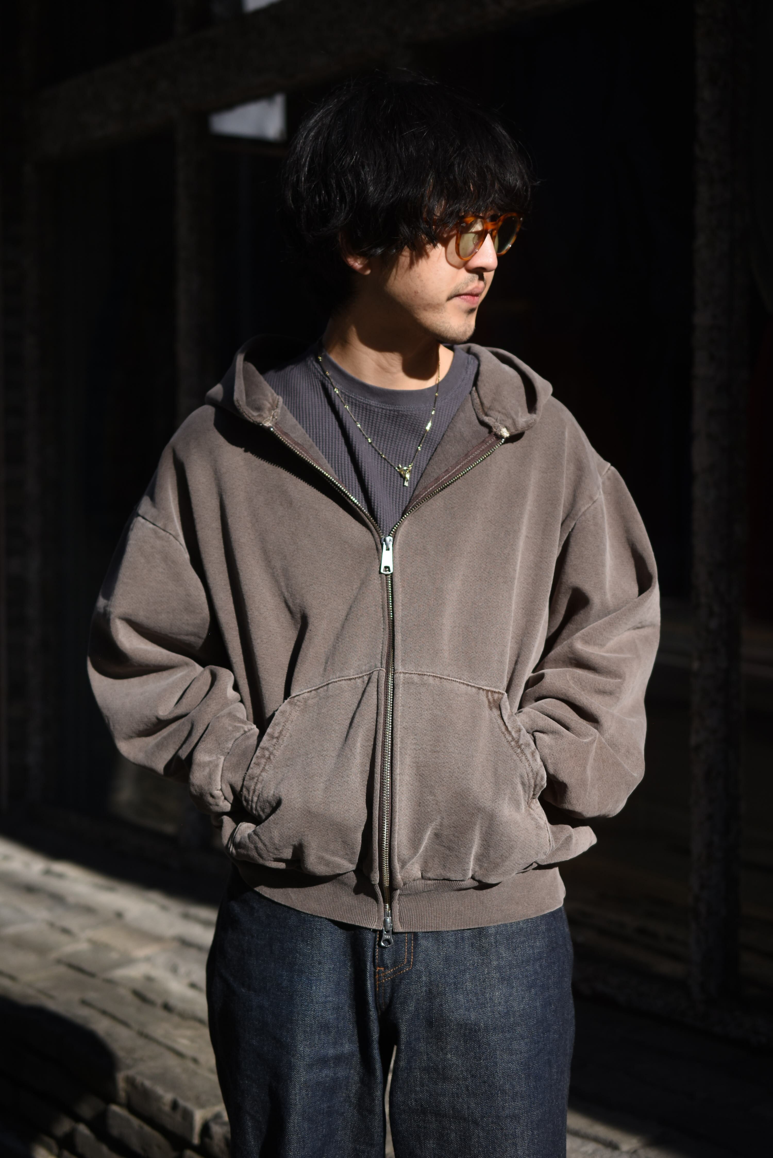"LOSANGELES APPAREL" double zip hoodie sweat.(charcoal gray)