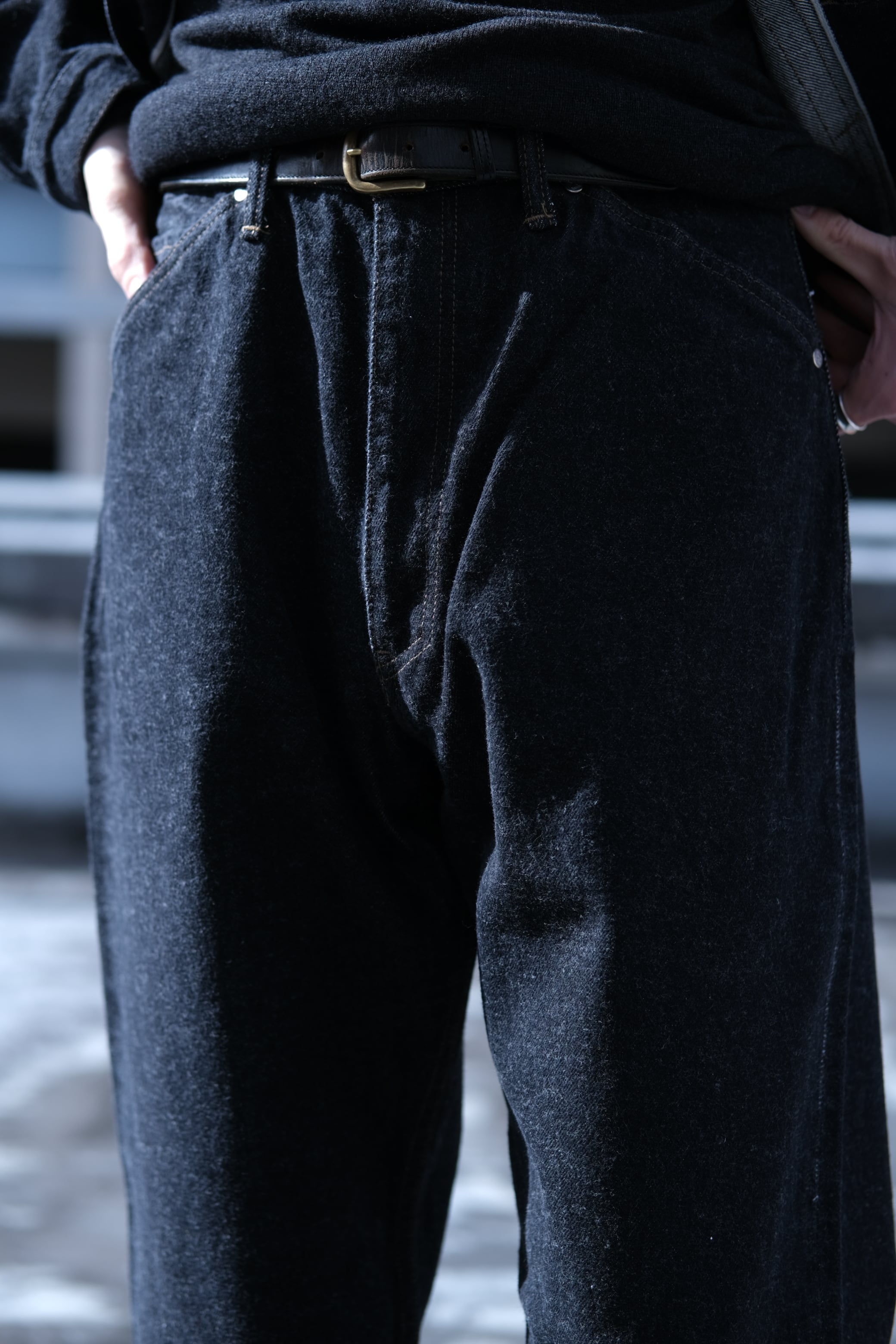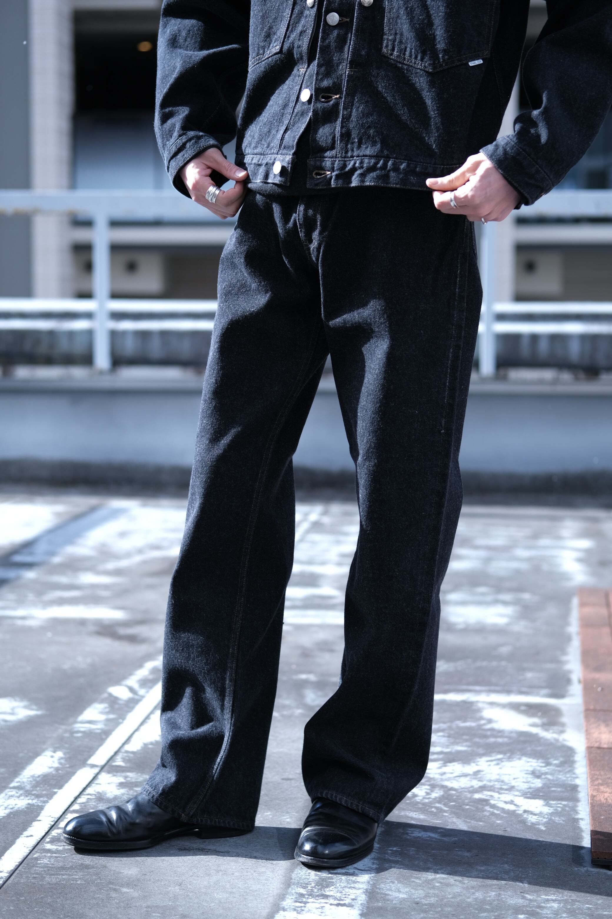 先染めブラックデニムパンツ