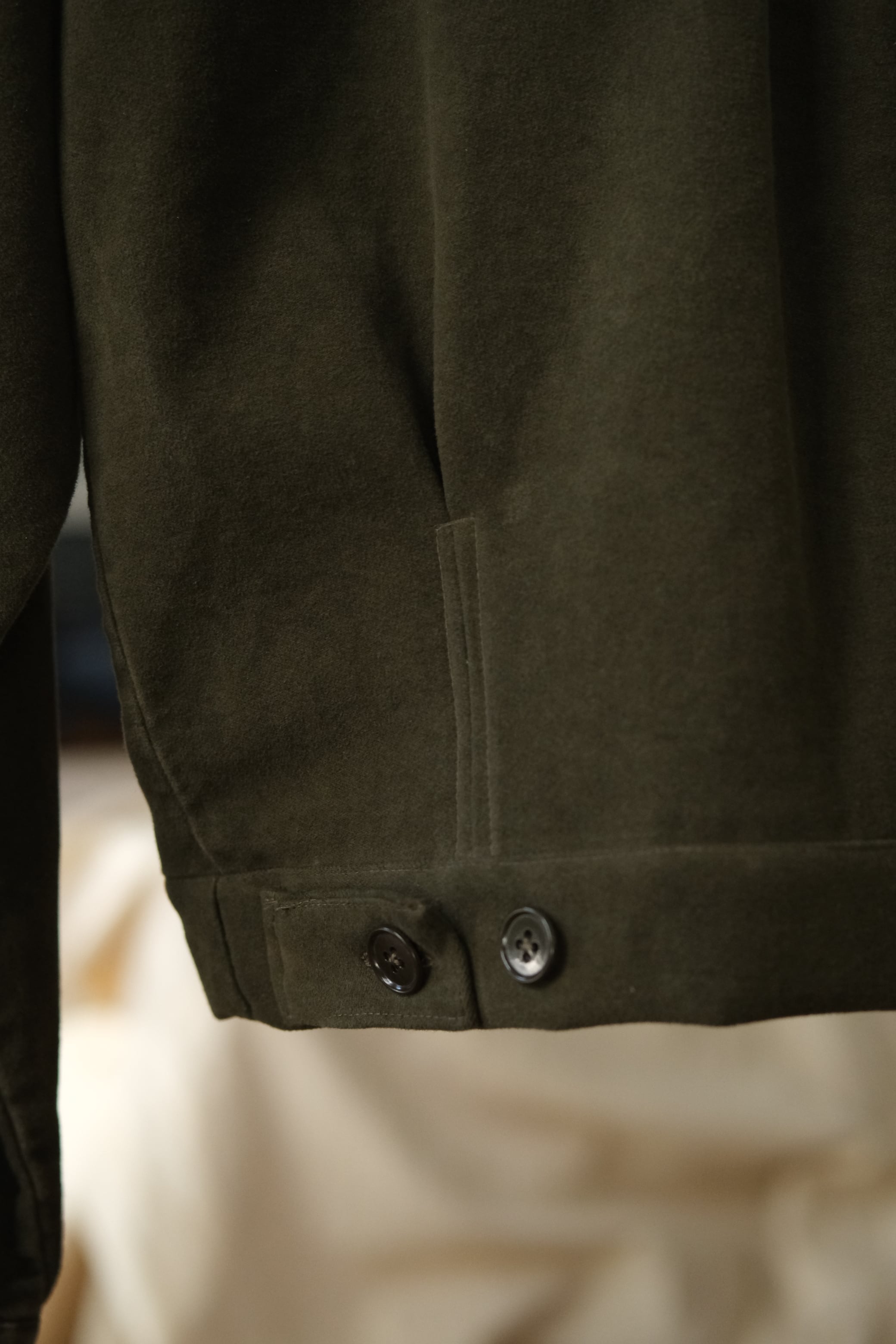 当店の縫製部でリメイクを施し、短い丈のジャケットに仕上げました。