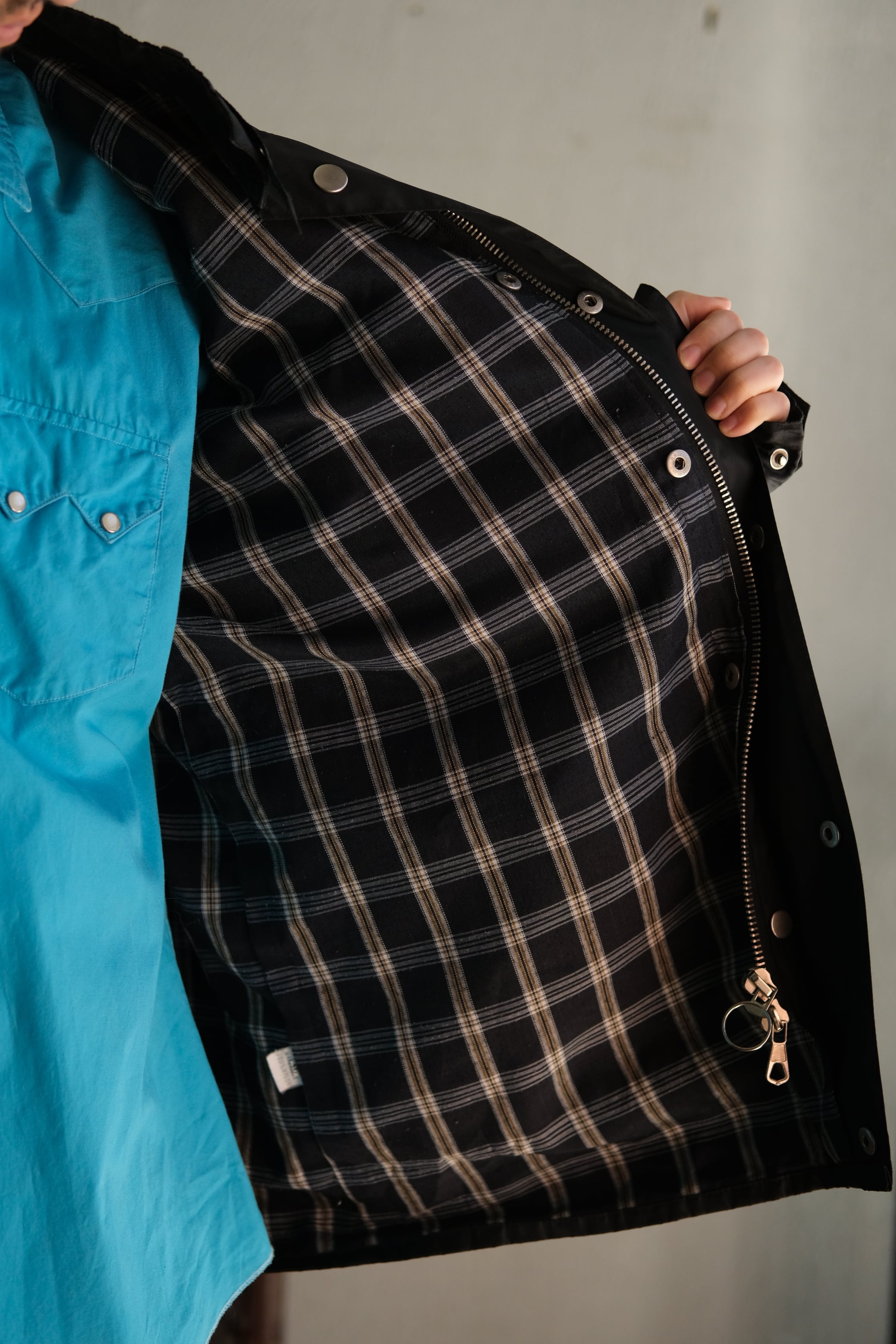 裏地はコットンポリ素材のチェック柄です。