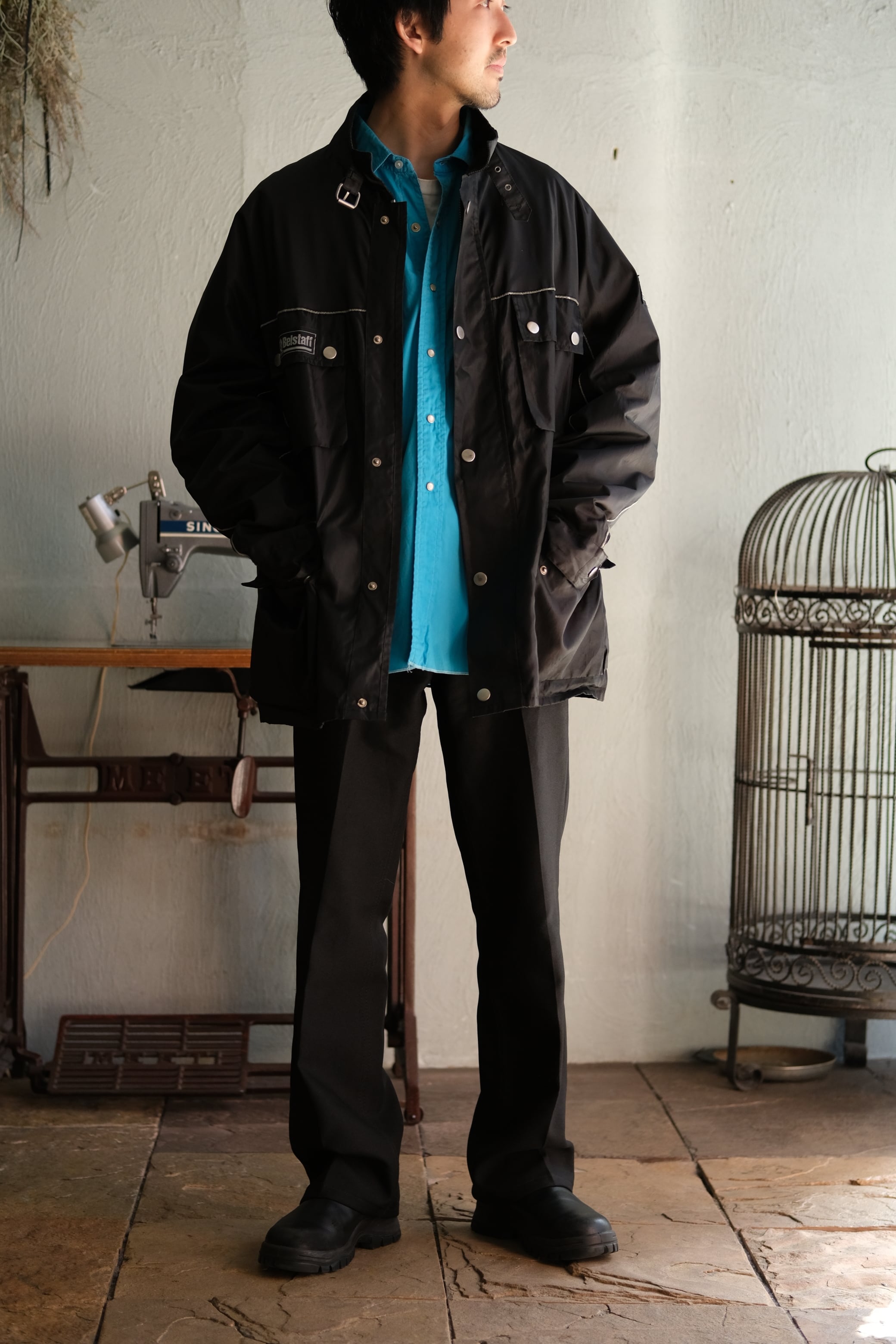"Belstaff" nylon motorcycle jacket.(black)