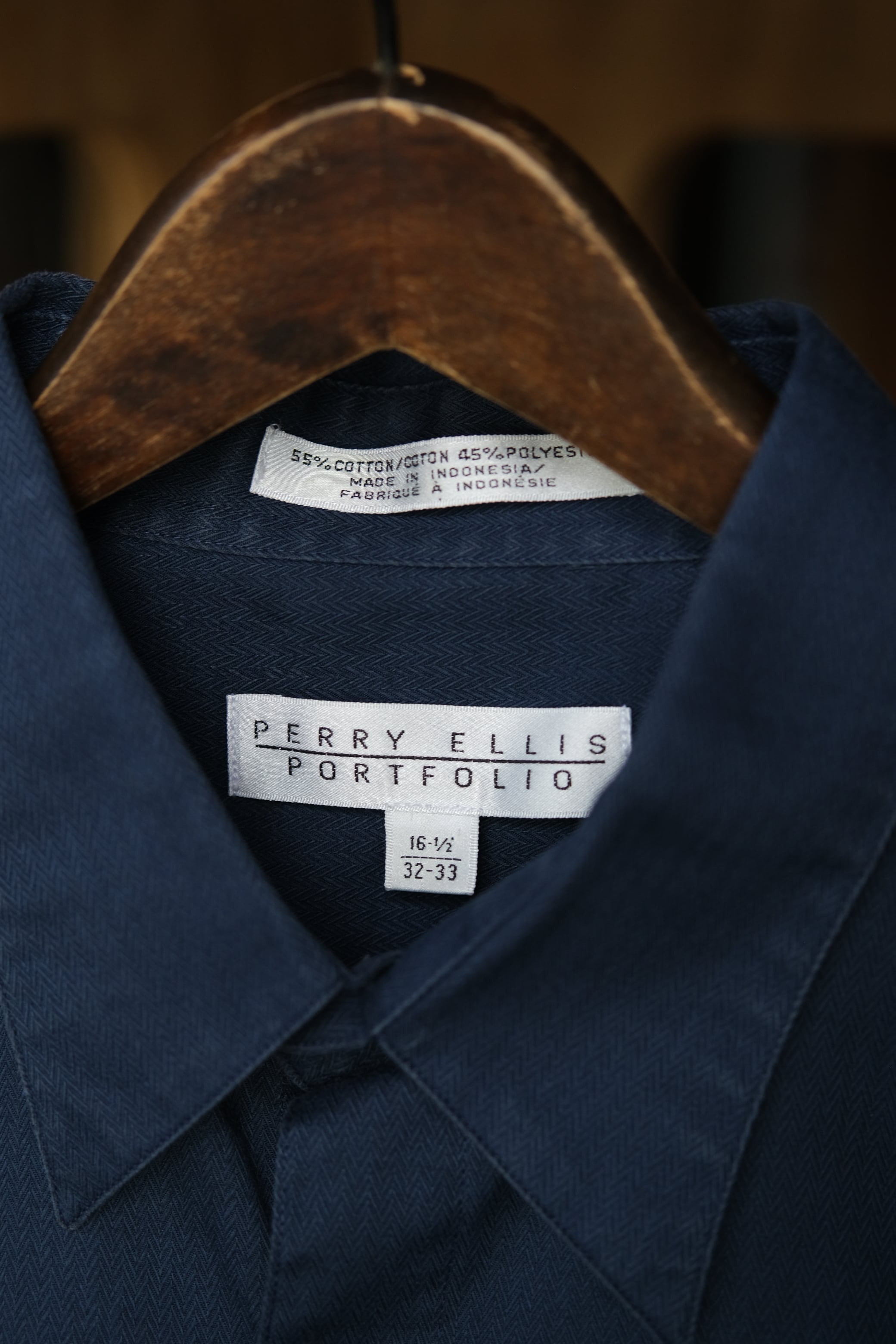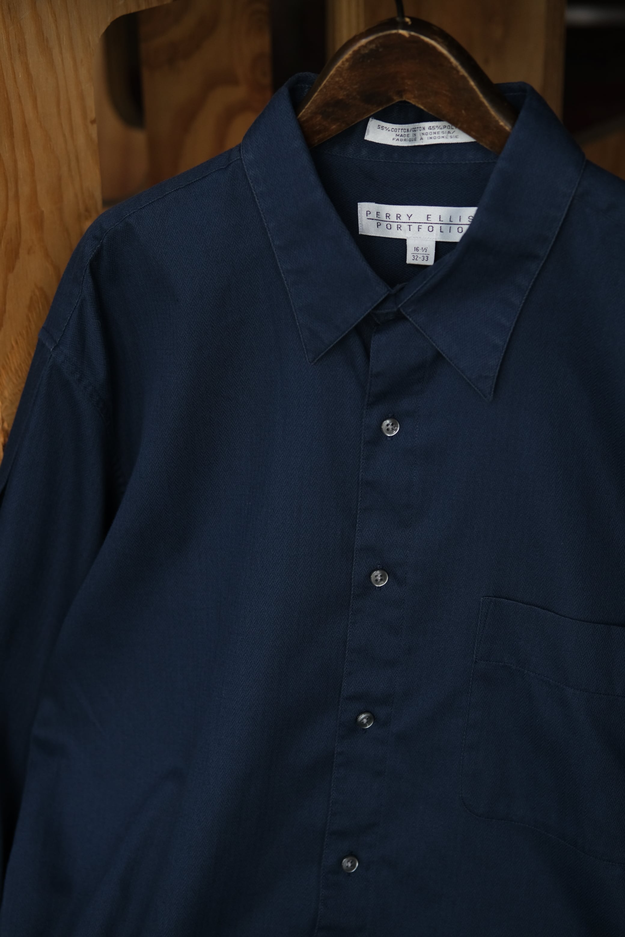 "PERRY ELLIS" Perry cotton polyester tuck shirt(navy)