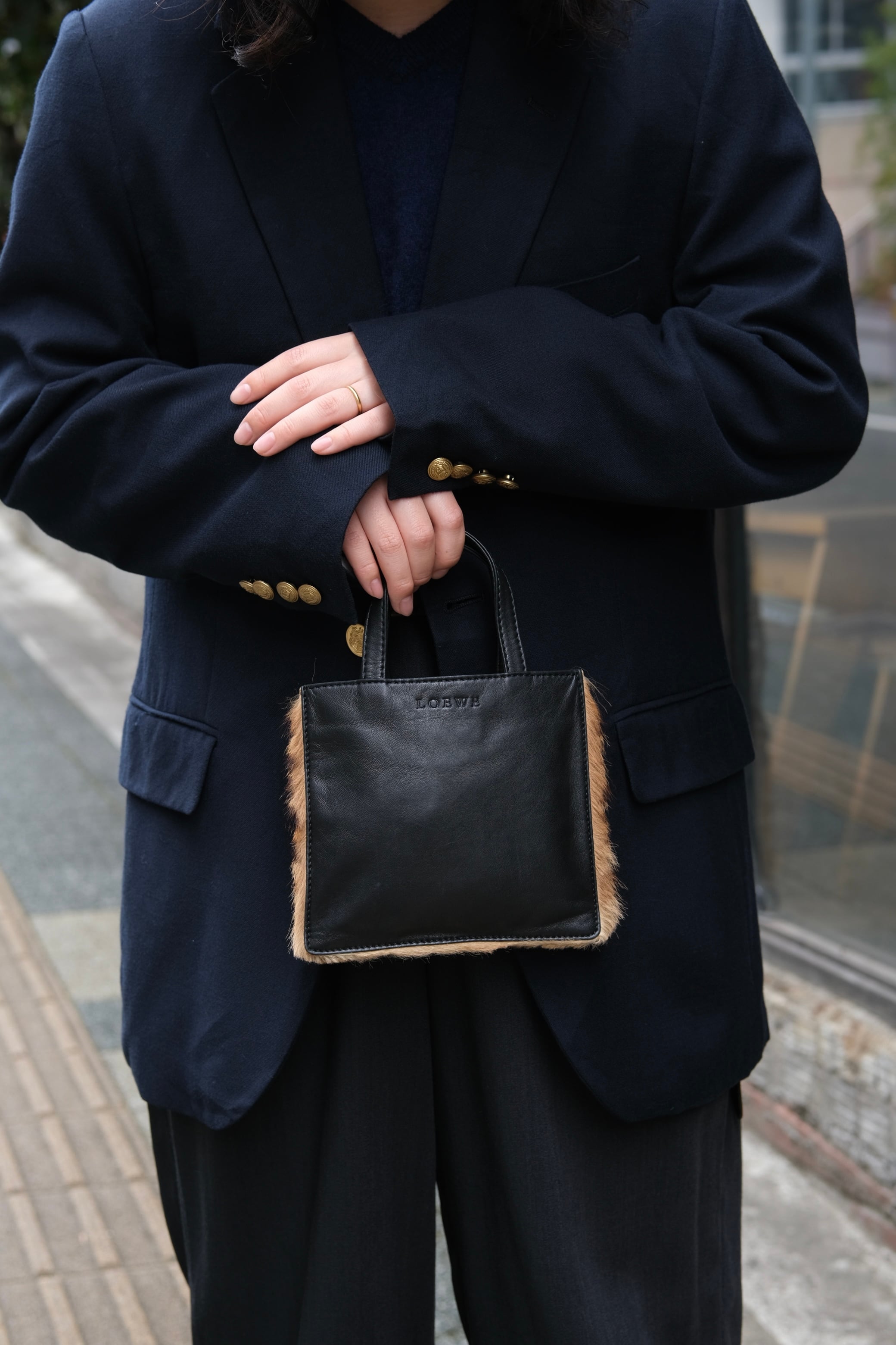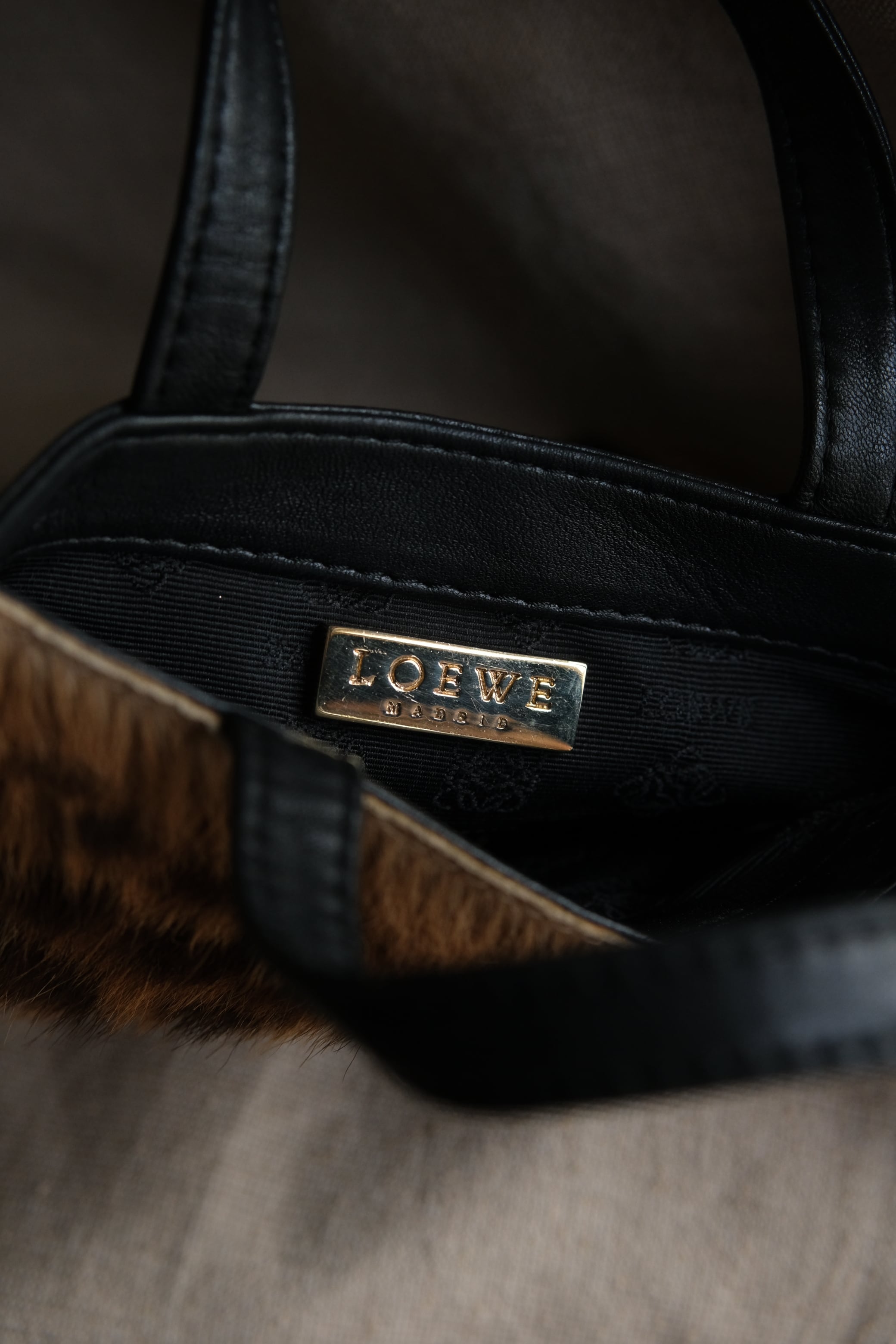 IORI/"LOEWE" 2face mini hand bag/leather × haircalf