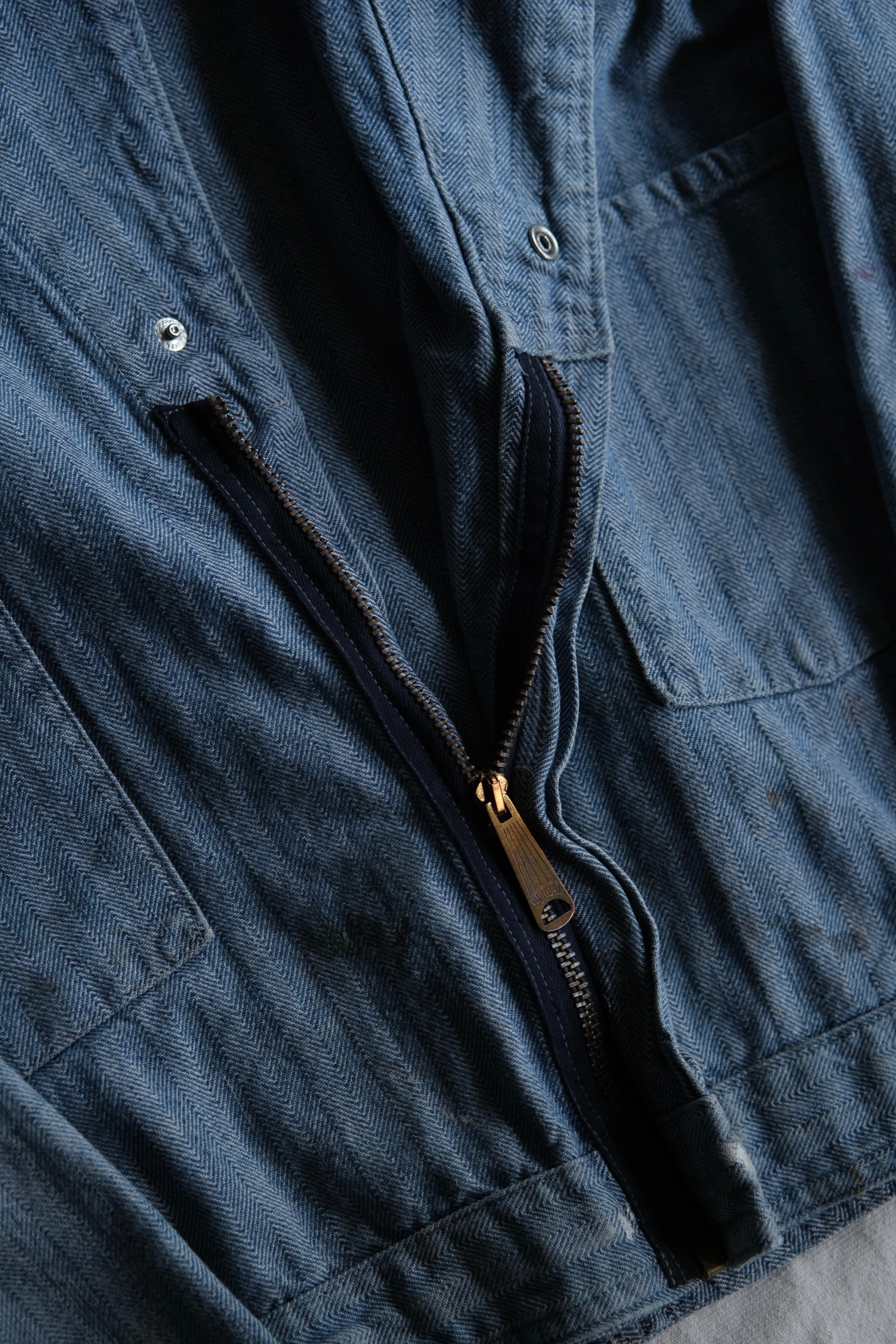 織模様が特徴的なヘリンボーン生地に、古いSERVALのzipとvintageならではのディテールが詰まった1着です。