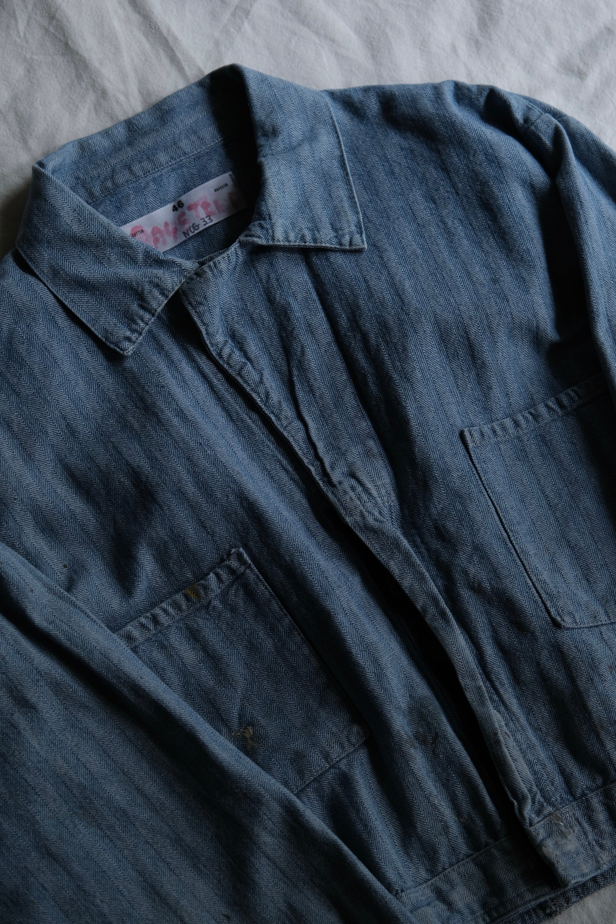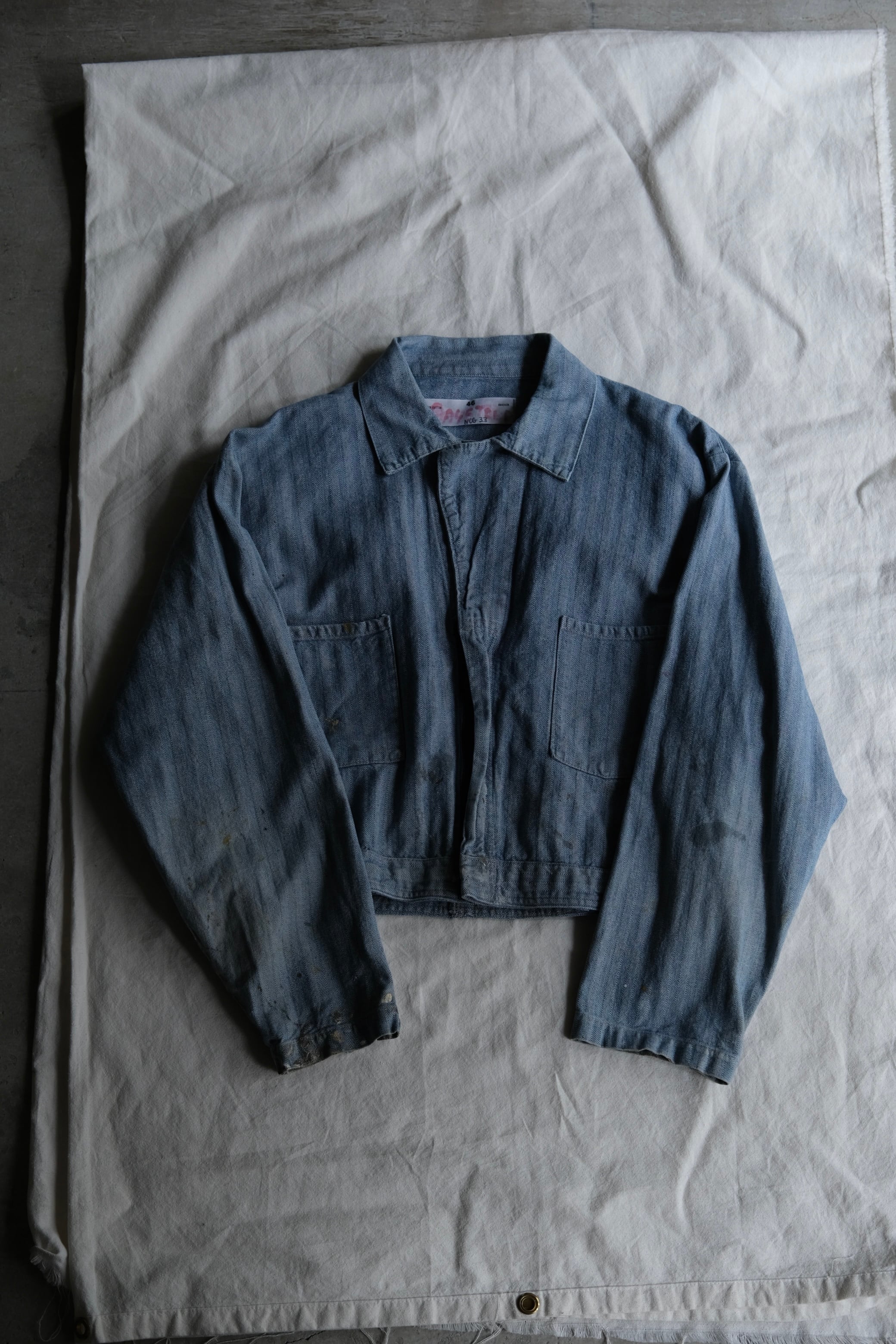 40〜50年代のジャンプスーツをリメイクし、短丈のワークジャケットに仕上げました。