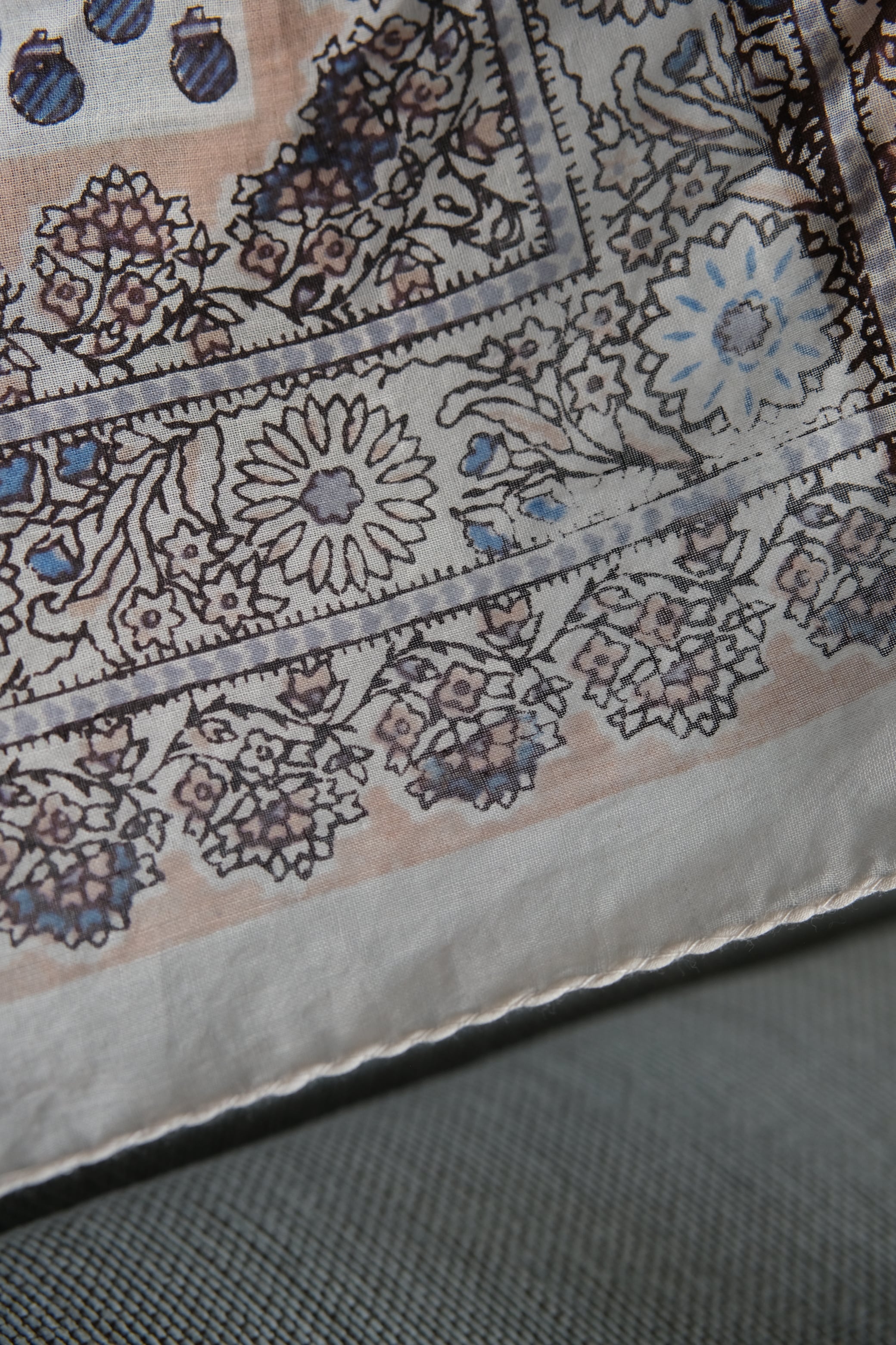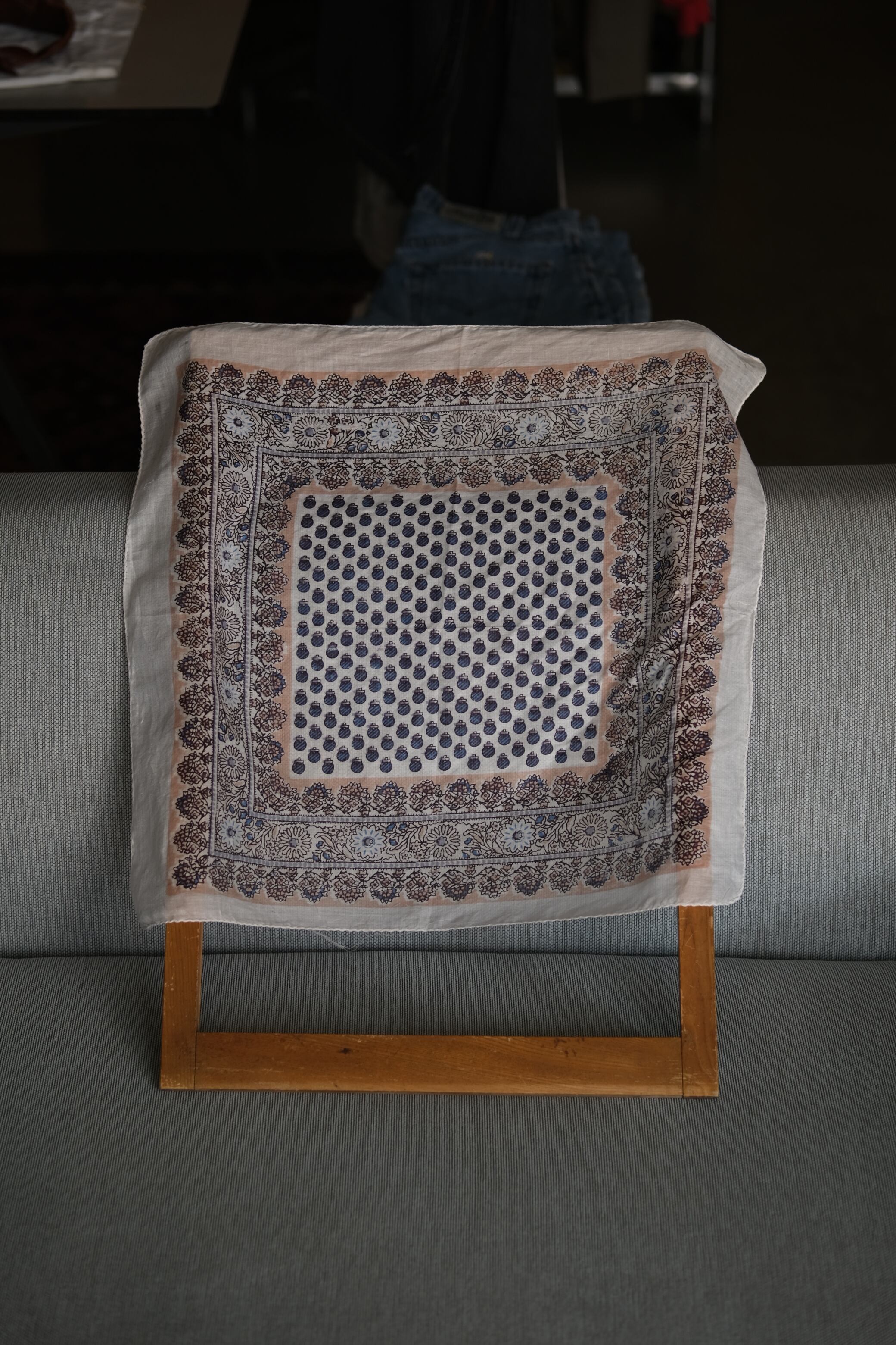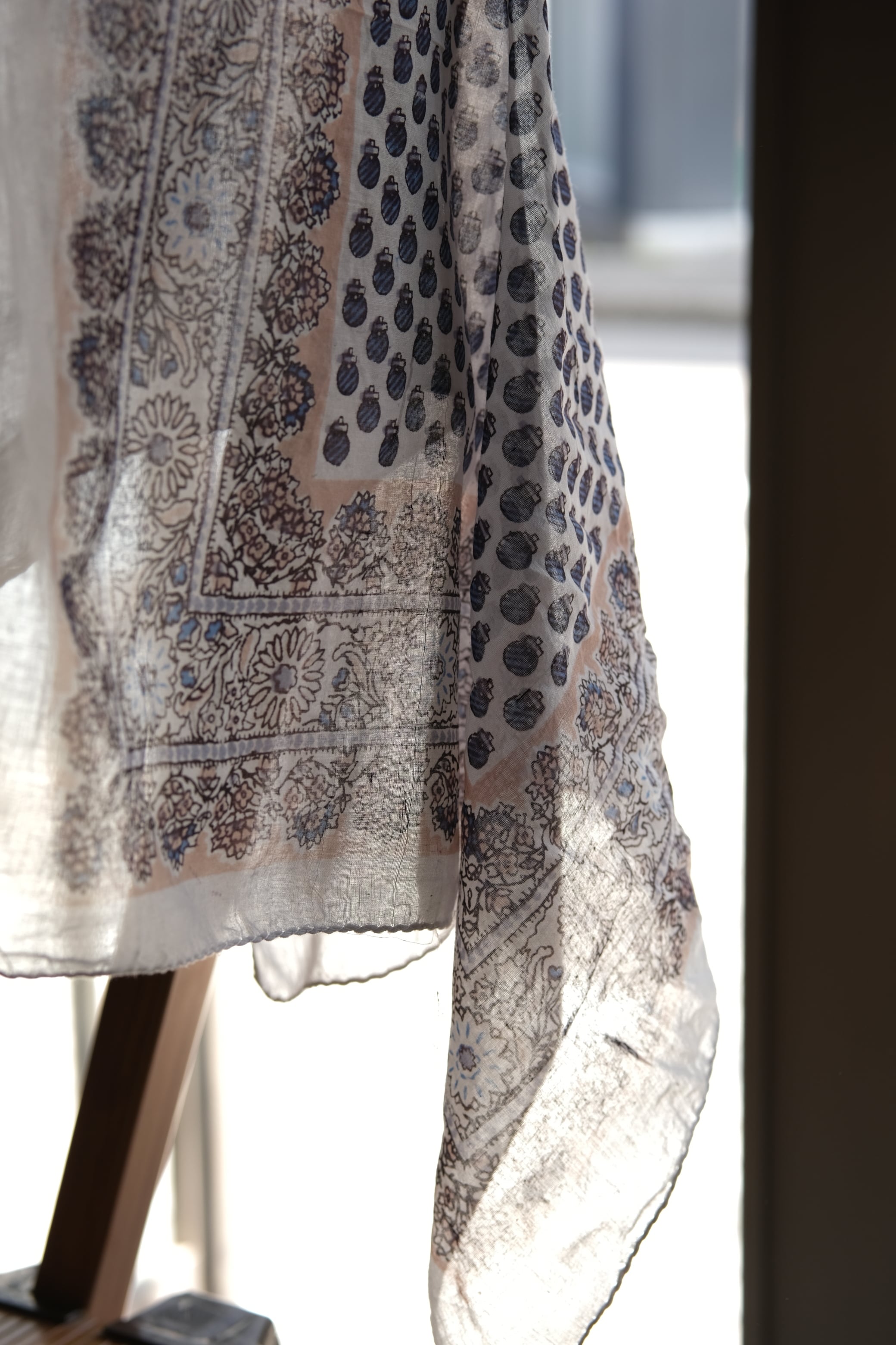 OK/india cotton hand print scarf/white blue