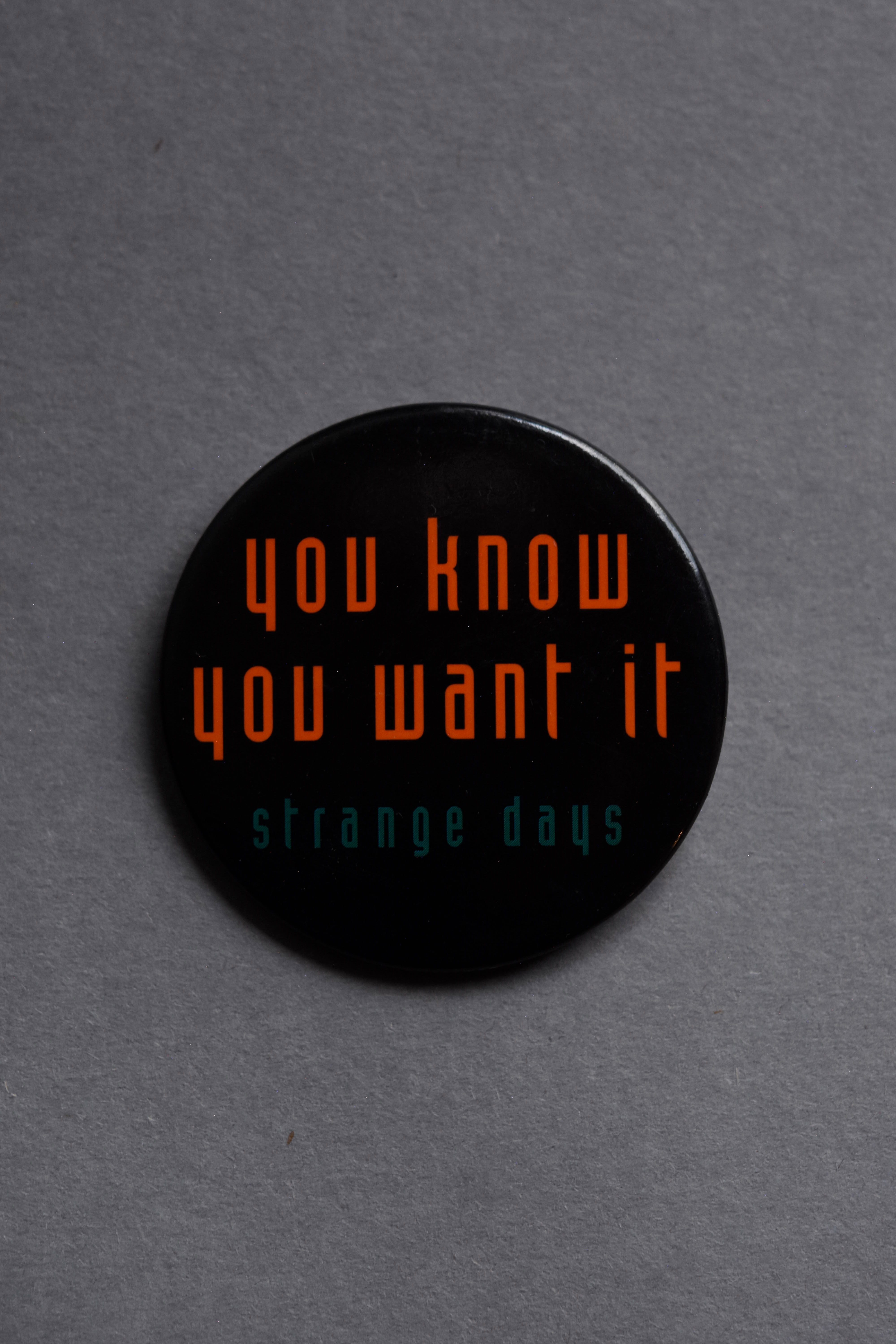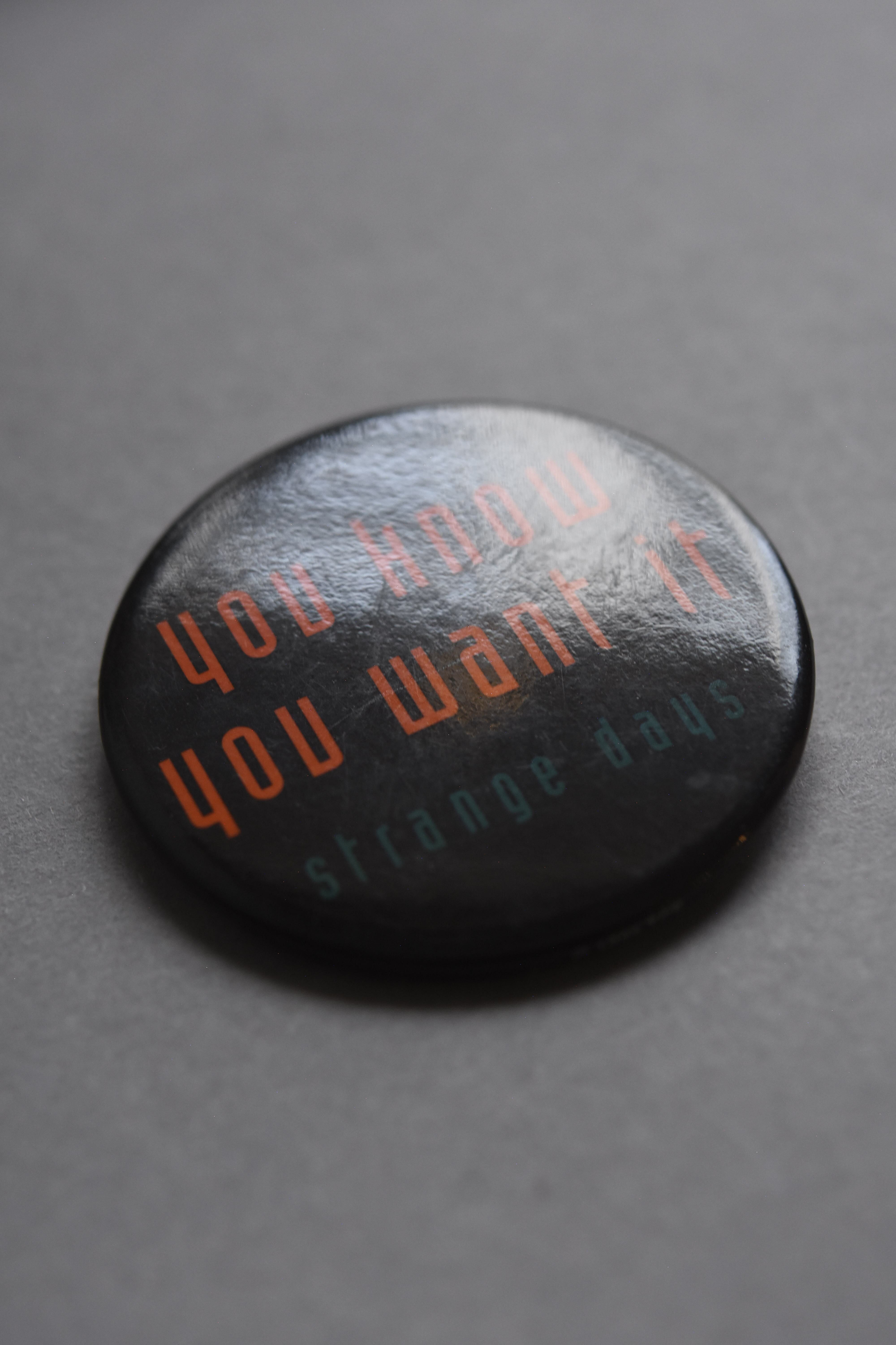 1995年の映画『ストレンジ・デイズ(Strange Days)』の缶バッジ。