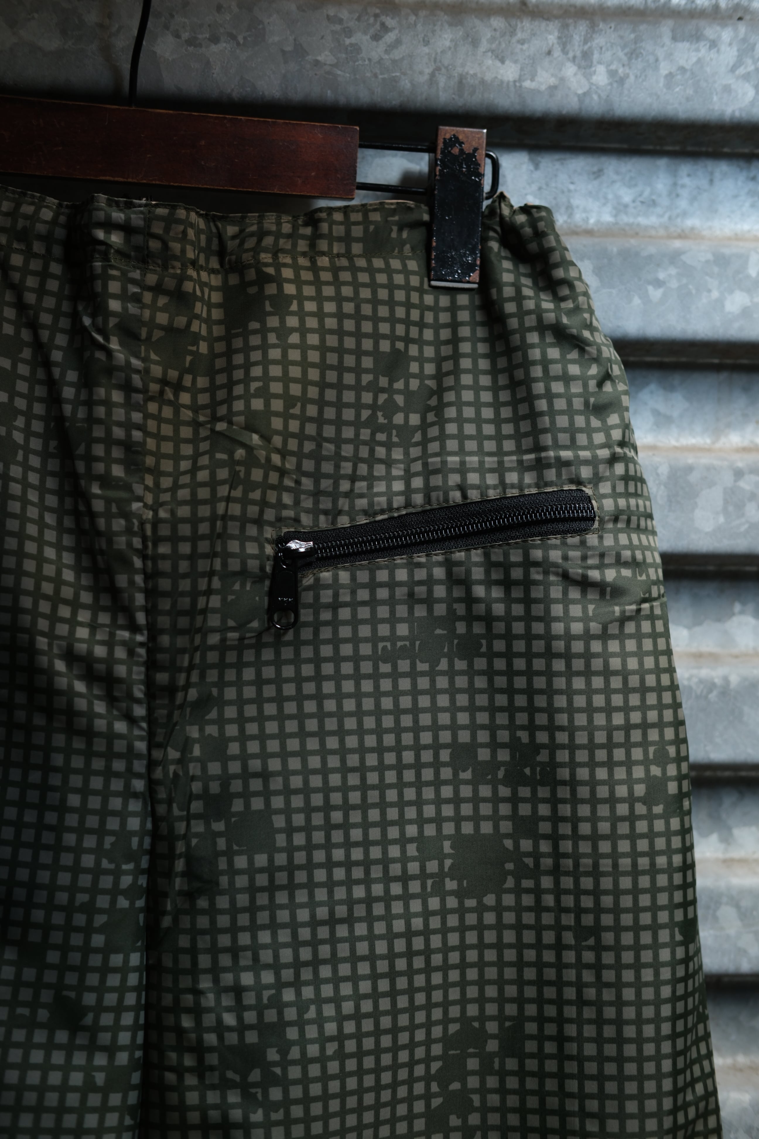 撥水性のあるGORE-TEXシェルを使用したデッドストックのリバーシブルパンツ。