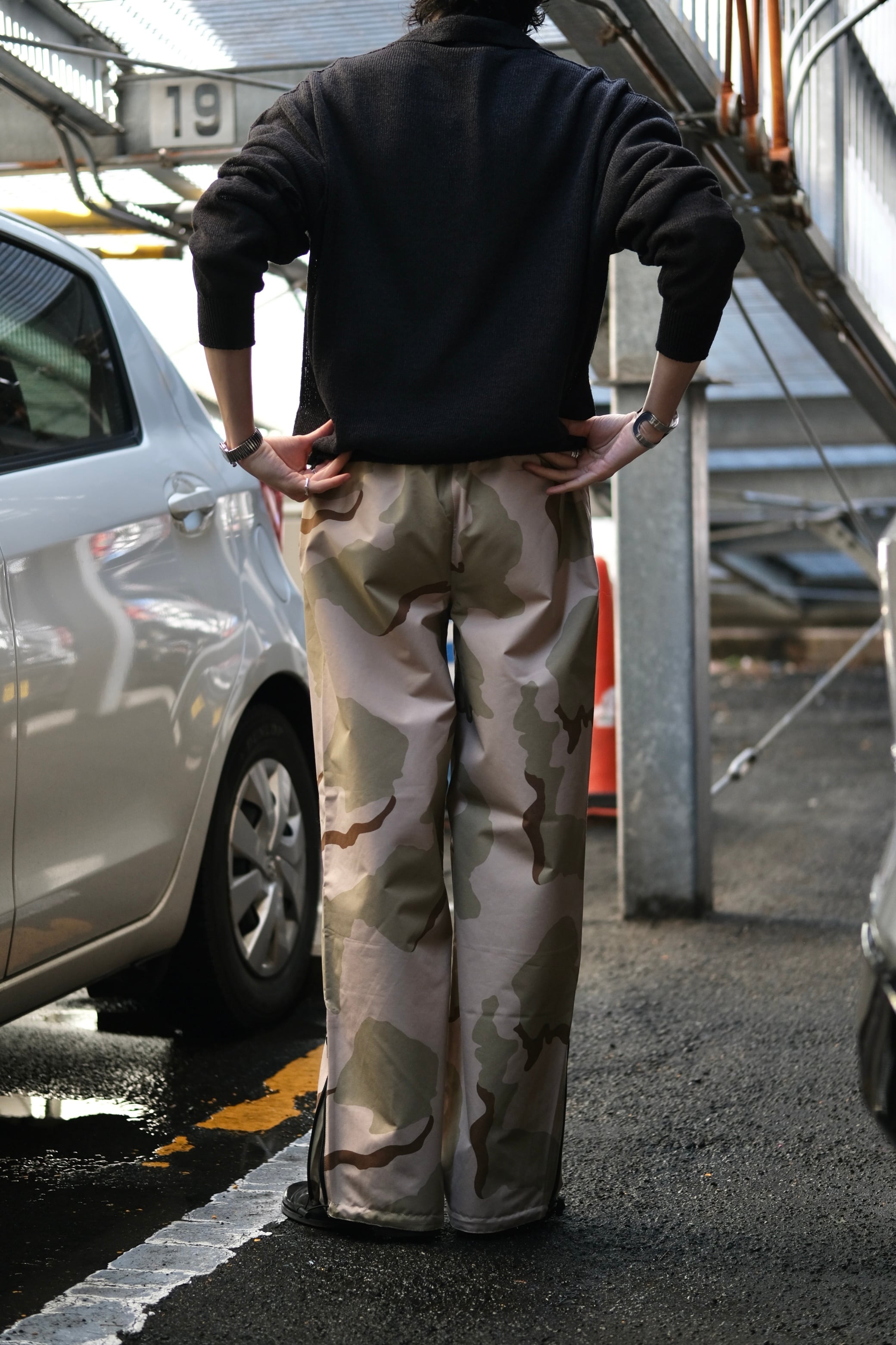 またウエストにはドローコード、裾にはZIPがついており、サイズやシルエットの調節が可能です。