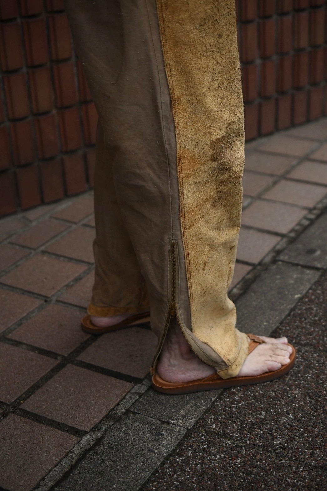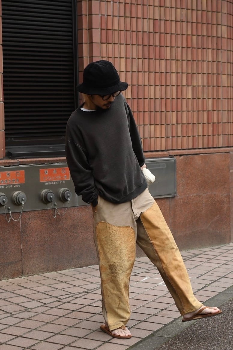 現代の衣類にはなかなか見られない縫製や、ギミックが楽しめる一点物のパンツです。