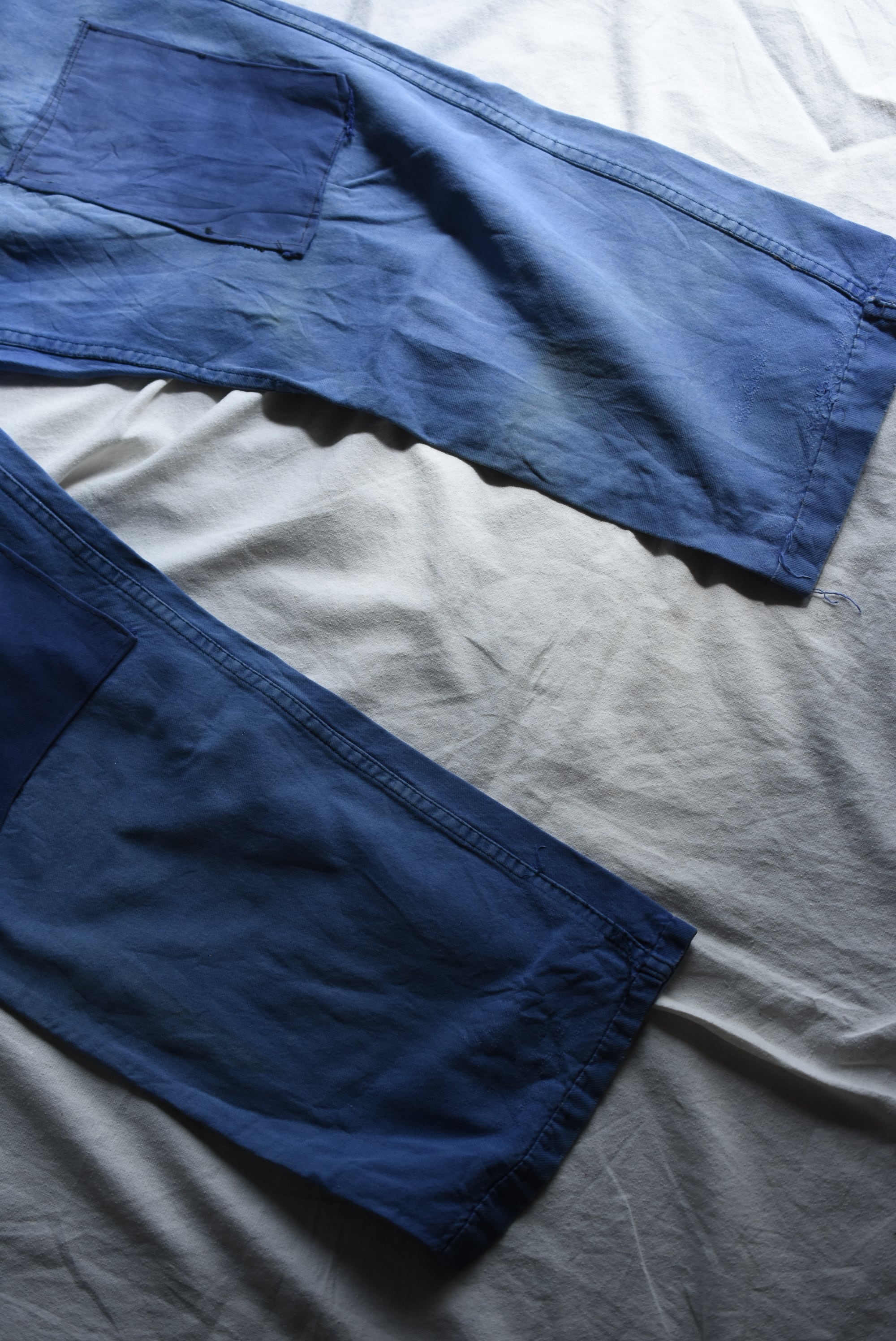 デニムのインディゴには見られない柔らかいインクブルーの色落ちが魅力的で、唯一無二の存在感。