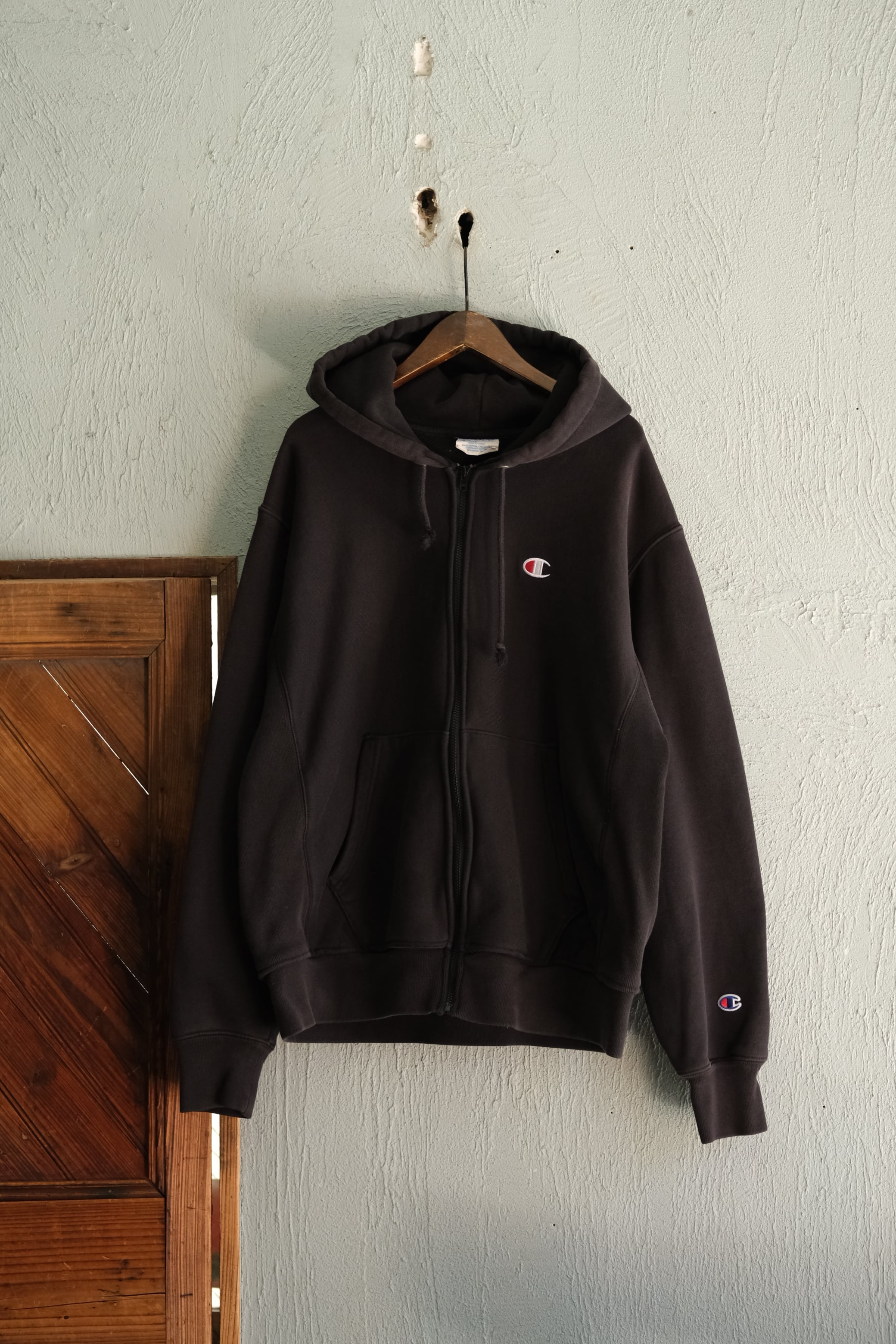 特筆事項 : プルオーバータイプだったスウェットの中央を割って同色のZIPを付けるリメイクを施しました。