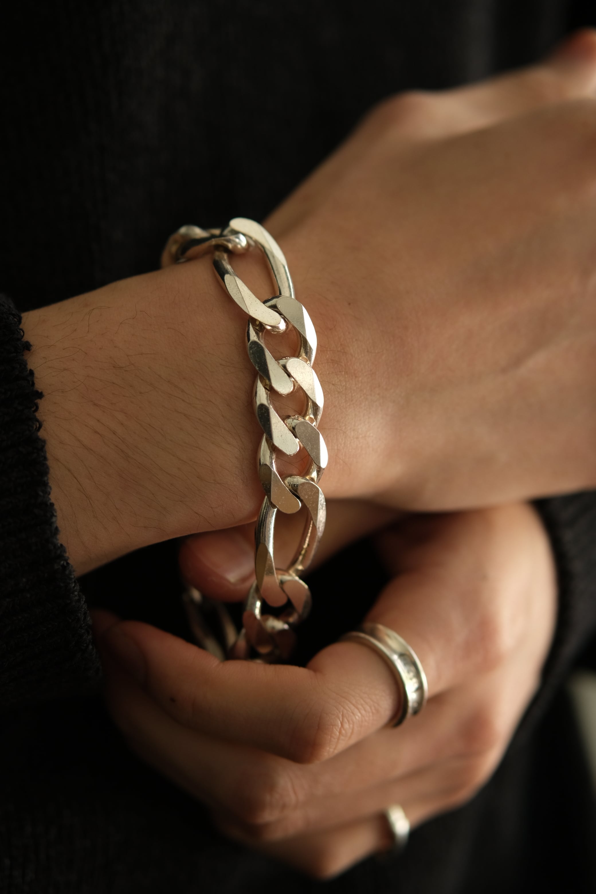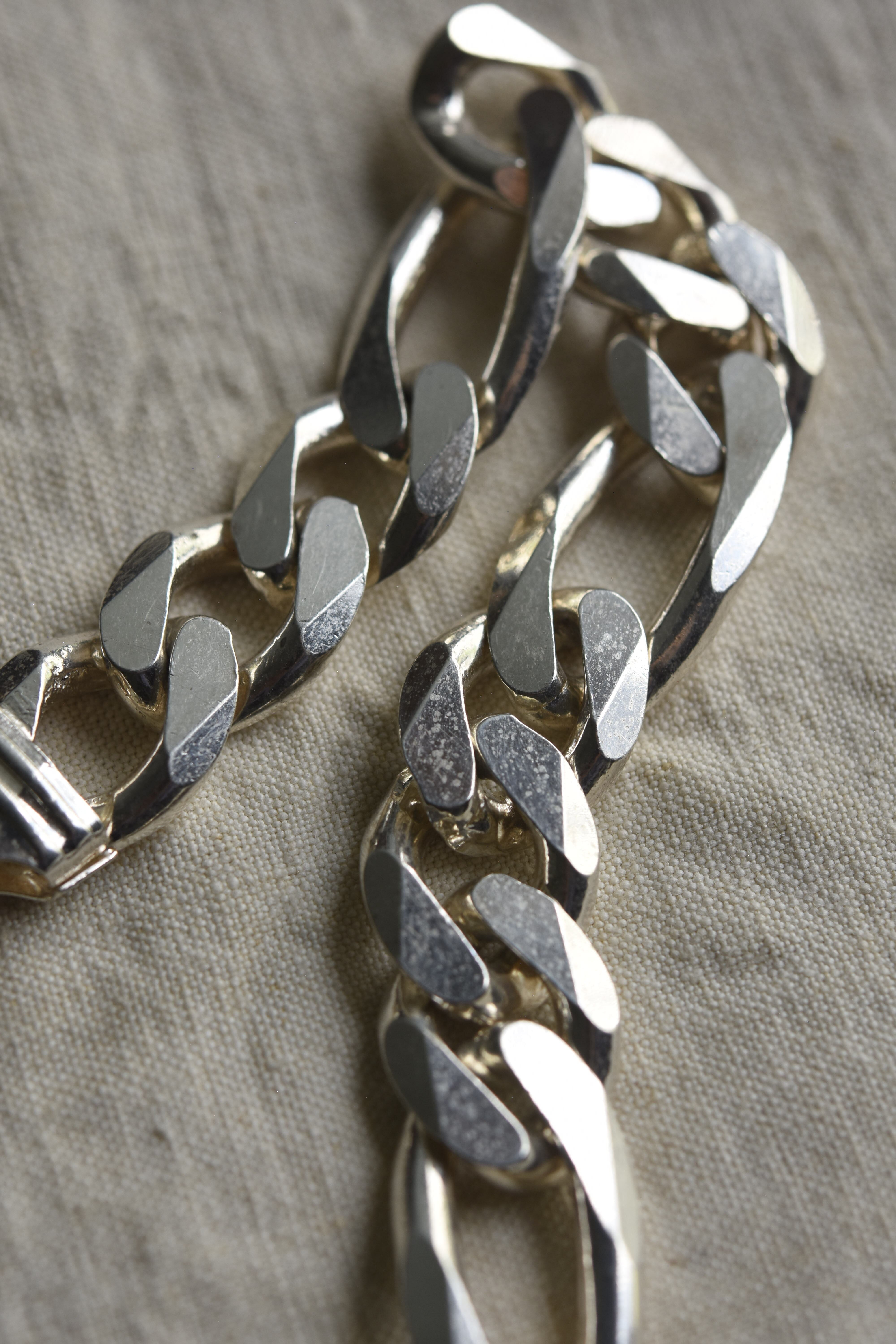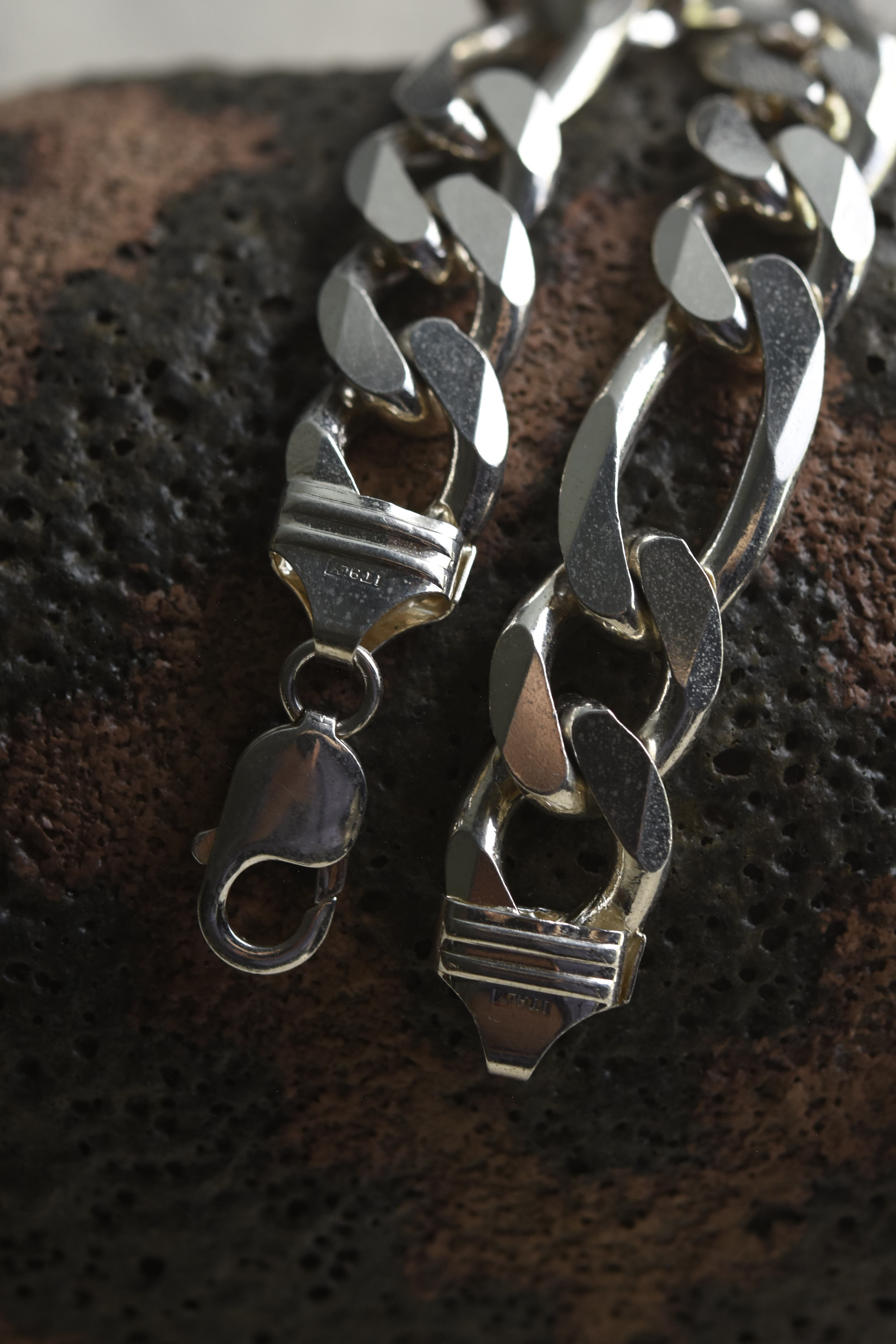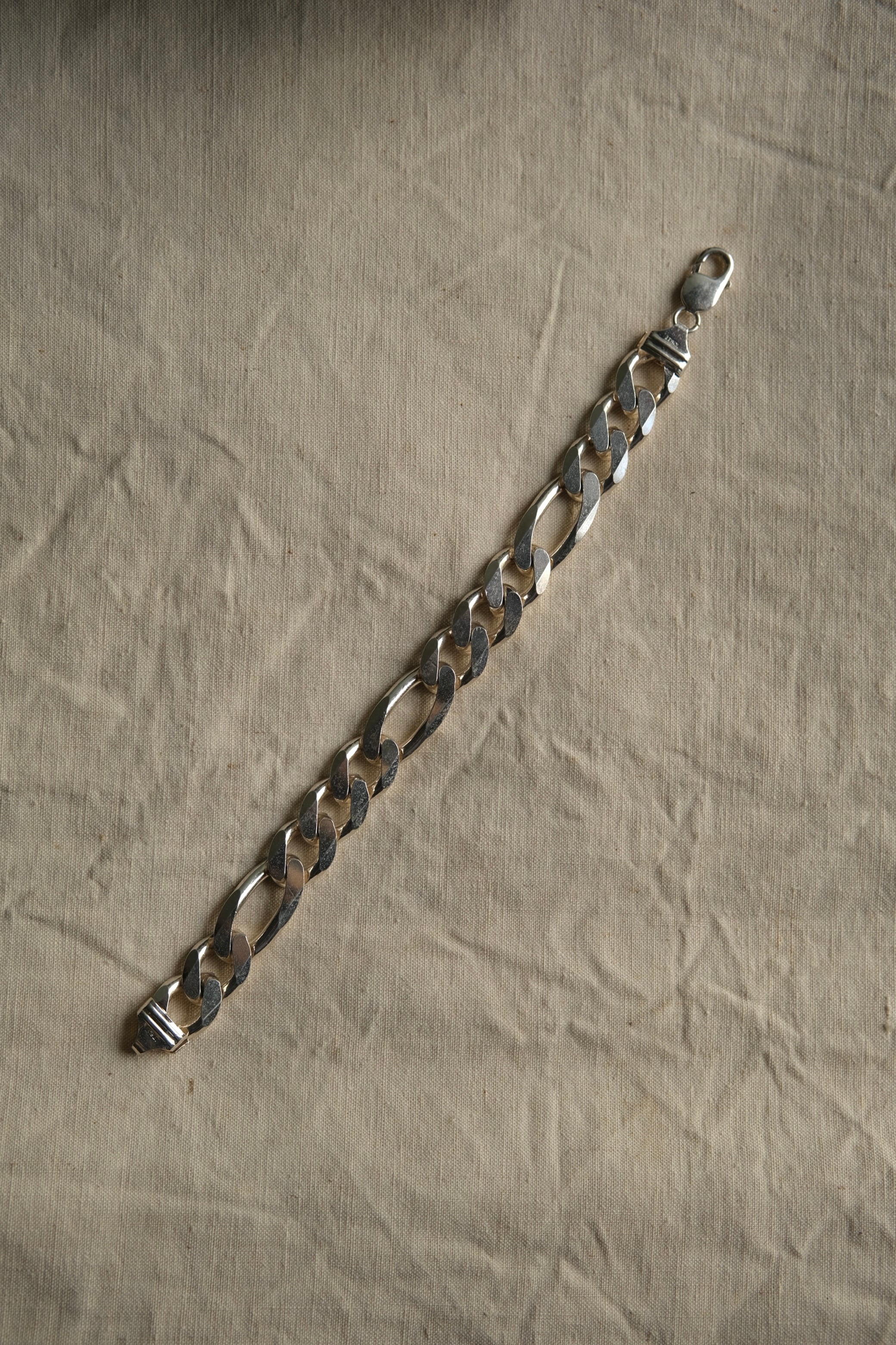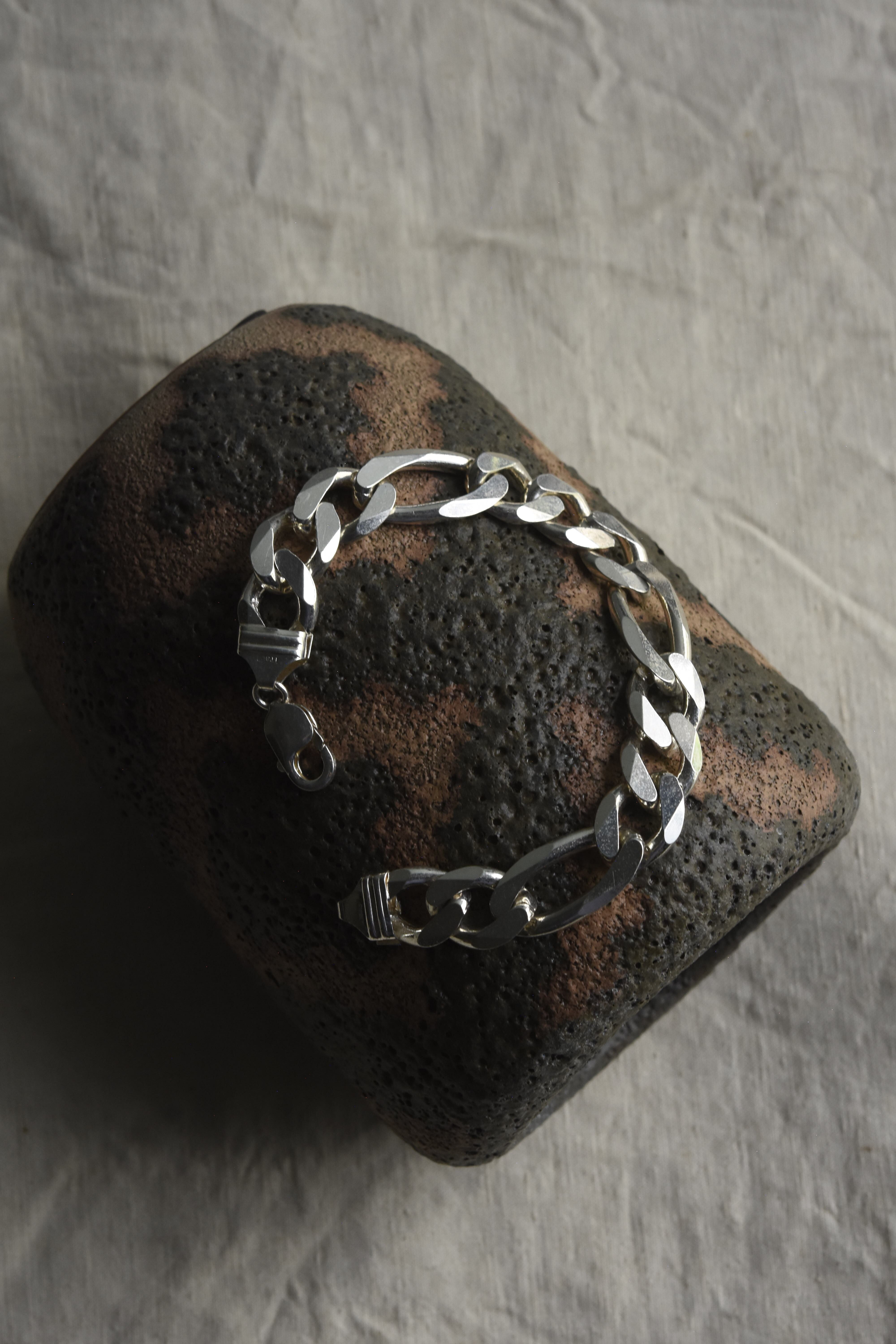 Utah/vintage 925 silver large figaro link chain bracelet/made in italy